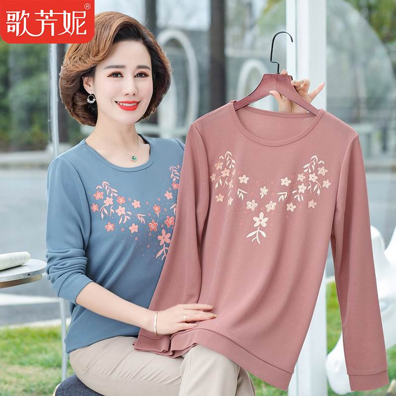 中老年妈妈装2022秋装新款打底衫女T恤长袖中年女装洋气宽松大码满40.0元减20.0元