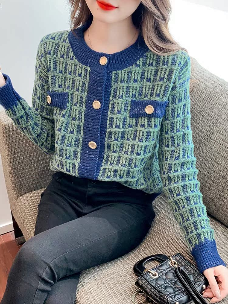 高级感长袖上衣秋冬2023新款针织开衫外套女装时尚气质小香风毛衣满101.0元减100.0元